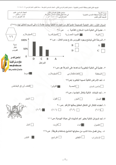 نموذج اختبار علوم سادس الفترة الثانية.
