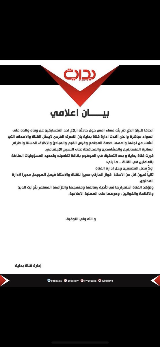 الوسم قرارات قناه بدايه على تويتر